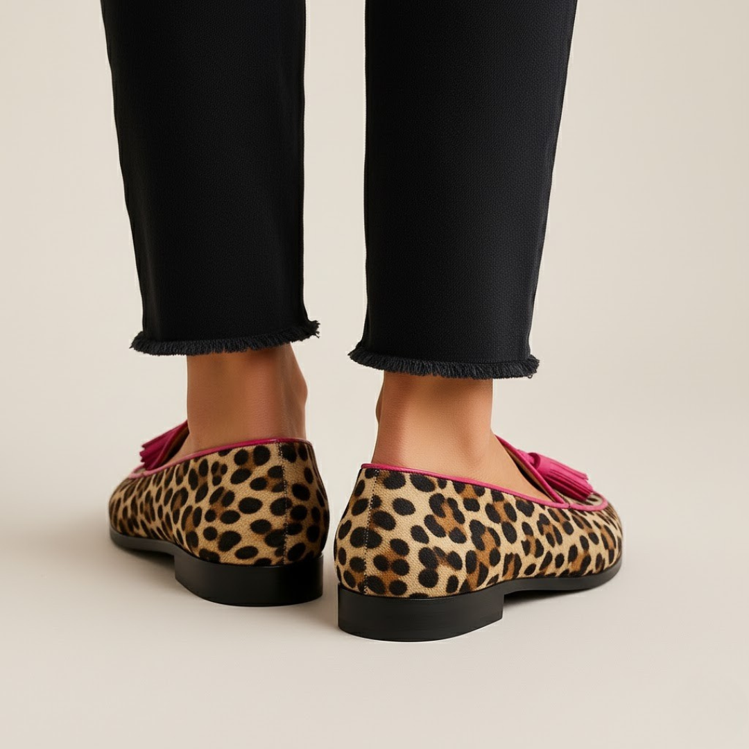 The Luna Tassel Loafers by Olivira London bring playful elegance and exceptional comfort together in one refined design. Crafted for women who want something more than ordinary flats, Luna combines a soft, flexible fit with a bold, stylish finish. The leopard-print suede upper and vibrant tassel detailing add personality to every step, while the cushioned insole ensures lasting comfort from morning to evening. A perfect balance of charm, colour, and ease — ideal for women who refuse to choose between style and comfort.